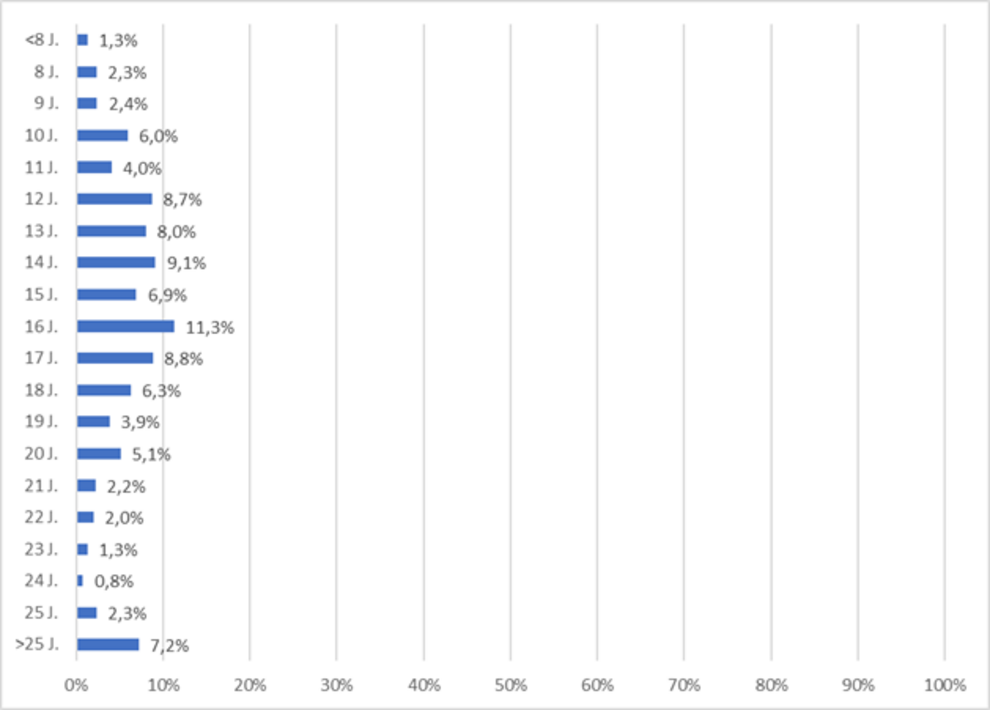 JbJ im KS-Z Hannover, Alter der Anrufenden (Prozentangaben; N=261)