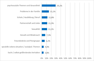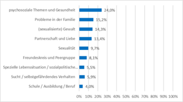 JbJ im KS-Z Hannover, Themen der Anrufenden (Prozentangaben; N=658, Mehrfachnennung möglich)