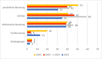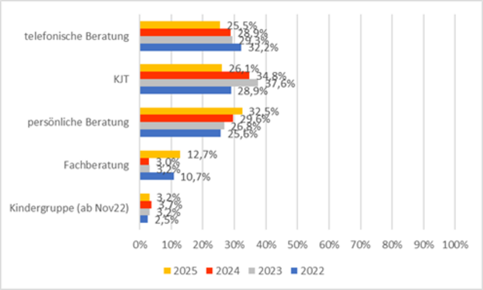 Anteil einzelner Beratungen im Jahresvergleich Kinder- und Jugendtelefon (KJT) 2025