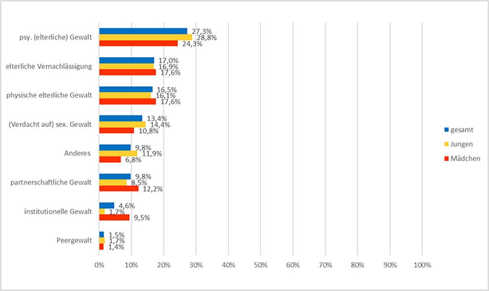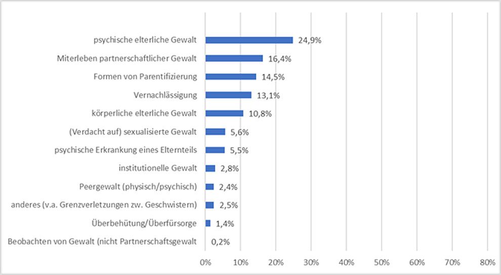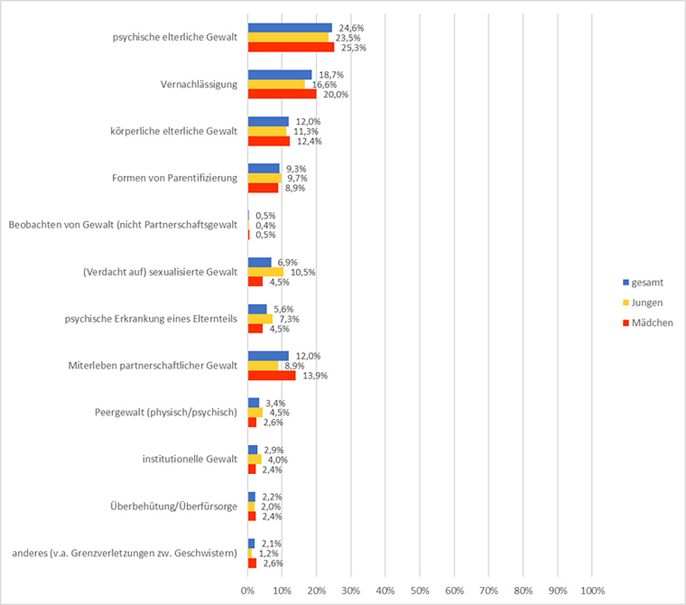 Persönliche Beratungen im KS-Z Hannover: erlebte Gewaltform im Vergleich (Prozentangaben; Mehrfachnennung möglich)