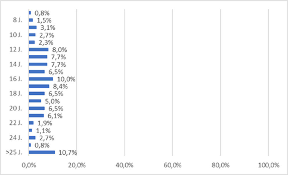 JbJ im KS-Z Hannover, Alter der Anrufenden (Prozentangaben; N=261)
