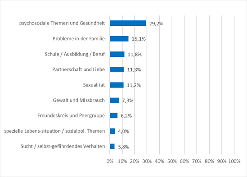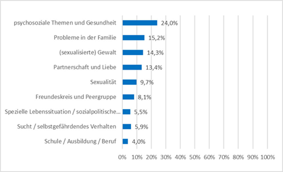 JbJ im KS-Z Hannover, Themen der Anrufenden (Prozentangaben; N=658, Mehrfachnennung möglich)